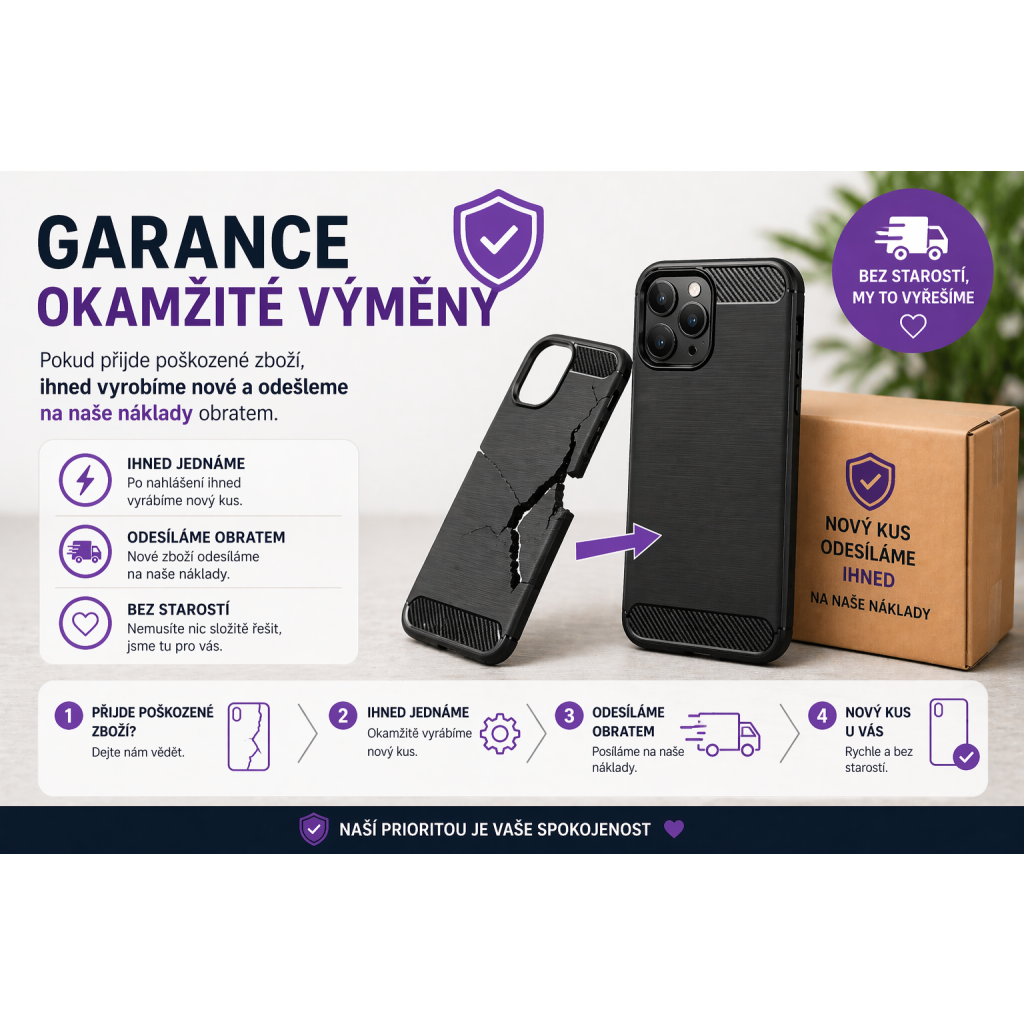 Okamžitě vyrábíme nový kus a odesíláme ho na naše náklady – bez čekání na reklamaci.