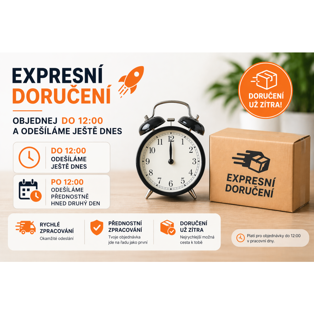 Objednej do 12:00 a tvoji objednávku odešleme ještě dnes.